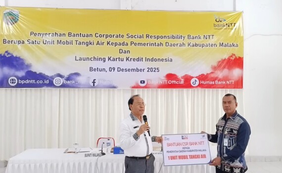 TIMORMEDIA.COM – Pemerintah Kabupaten Malaka resmi menerima satu unit mobil tangki air dari Bank NTT Cabang Betun sebagai bagian dari program Corporate Social Responsibility (CSR).