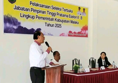TIMORMEDIA.COM – Bupati Malaka, dr. Stefanus Bria Seran, MPH (SBS), resmi membuka Seleksi Terbuka Jabatan Pimpinan Tinggi (JPT) Pratama Eselon II B Malaka 2025 di Aula Cinta Damai Resort, Betun, Kamis (11/12/2025).