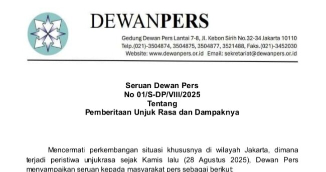 TIMORMEDIA.COM – Dewan Pers mengeluarkan seruan resmi terkait pemberitaan aksi unjuk rasa yang terjadi sejak Kamis (28/8/2025) di Jakarta.