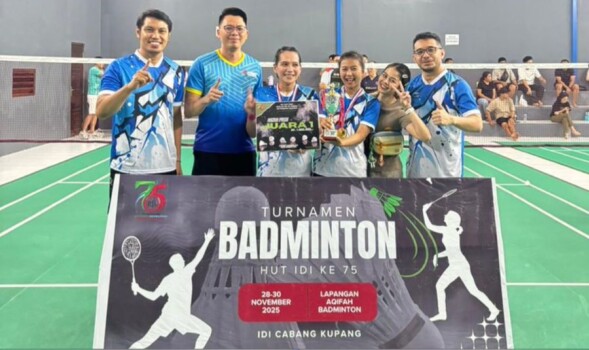 TIMORMEDIA.COM – Dokter-dokter asal Rumah Sakit Umum Penyangga Perbatasan (RSUPP) Betun, Kabupaten Malaka kembali menorehkan prestasi membanggakan di ajang Turnamen Badminton di Hari Ulang Tahun Ikatan Dokter Indonesia (HUT IDI) Ke 75 yang digelar di Kota Kupang.