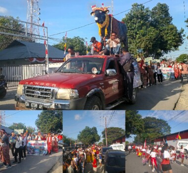 Ribuan warga memadati pusat Kota Betun untuk menyaksikan parade yang berlangsung sejak siang.