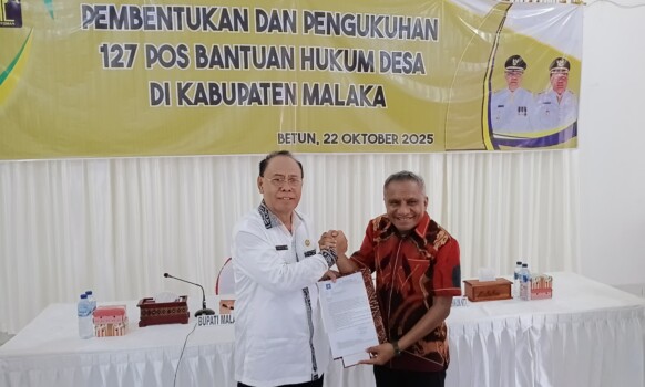 Pujian tersebut disampaikan saat pembentukan dan pengukuhan Pos Bantuan Hukum (Posbankum) untuk 127 desa di 12 kecamatan se-Kabupaten Malaka yang digelar di Aula Kantor Bupati Malaka, Rabu (22/10/2025).