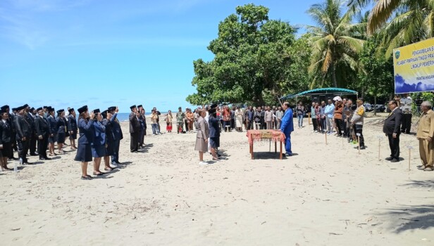 Prosesi pelantikan berlangsung di Pantai Hasan Maubesi, Desa Fahiluka, Kecamatan Malaka Tengah, Kabupaten Malaka, Nusa Tenggara Timur. Suasana khidmat terasa kental dengan latar alam pesisir yang terbuka, memberikan nuansa berbeda dari pelantikan pada umumnya.