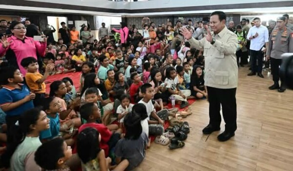 Dalam kesempatan tersebut, Prabowo berinteraksi dengan para pengungsi dan menanyakan kondisi keluarga hingga keadaan rumah mereka saat banjir melanda.