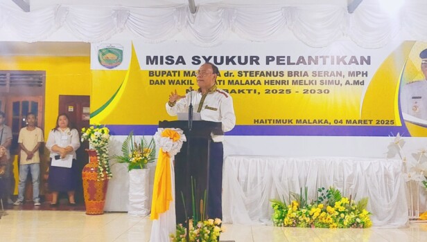 Dalam Misa Syukur Pelantikan SBS-HMS di Haitimuk, Malaka, Selasa (4/3/2025), Bupati Stefanus Bria Seran menegaskan komitmennya untuk segera merealisasikan janji kampanye dengan langkah konkret.