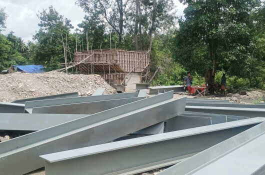 Pelaksana proyek dari CV Solusi Pratama Mandiri, Samsul S, menyampaikan bahwa hingga awal Maret 2026, pekerjaan fisik jembatan terus berjalan sesuai rencana.