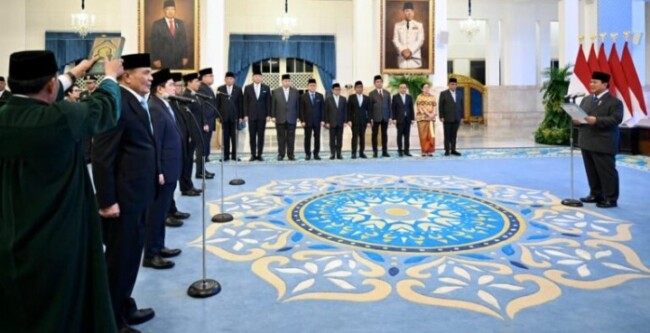 Presiden Prabowo memimpin langsung jalannya prosesi, termasuk pembacaan sumpah jabatan yang diikuti para pejabat terpilih.