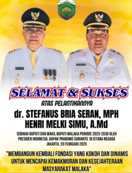 TimorMedia.Com – Resmi dilantik hari ini oleh Presiden RI Prabowo Subianto Bupati dan Wakil Bupati Kabupaten Malaka dr. Stefanus Bria Seran, MPH dan Henri Melki Simu, A.Md (SBS-HMS)