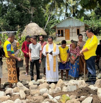 Sebelum pembangunan dimulai, kegiatan diawali dengan doa bersama yang dipimpin oleh pastor paroki setempat. Prosesi ini menjadi simbol harapan agar pembangunan rumah berjalan lancar dan membawa berkat bagi penerima bantuan.