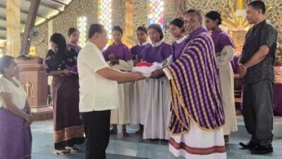 TIMORMEDIA.COM – Wakil Bupati Malaka, Henri Melki Simu (HMS), memberikan sumbangan baju ajudan untuk Paroki…