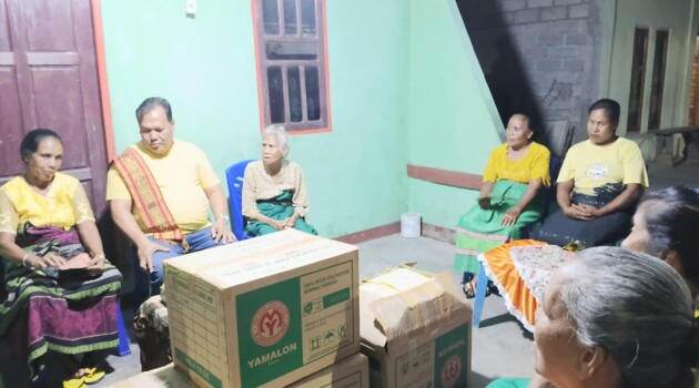 Di sela agenda pemerintahan yang padat, HMS menyambangi para ibu dan penenun lansia di Dusun Bakateu, Desa Wehali, Kecamatan Malaka Tengah.