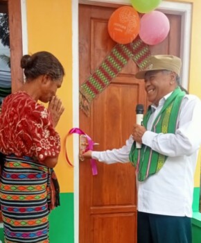 Lokasi penyerahan secara simbolis tersebut ini dirumah Elisabet Haki Desa Fafinesu B, Insana Fafinesu Kabupaten Timor Tengah Utara.